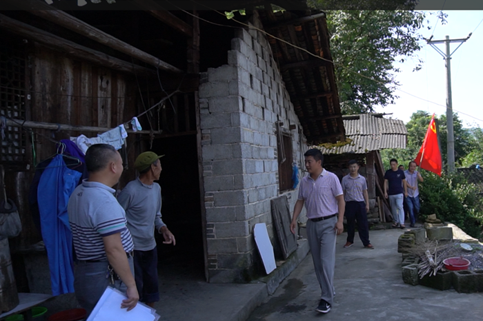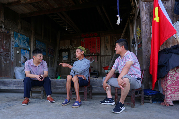 经过50分钟在阳光下的艰苦跋涉,到了满店村困难老党员郭银安家。